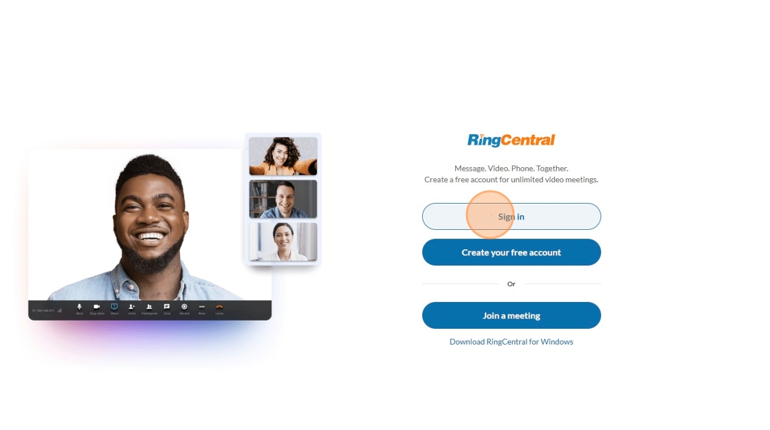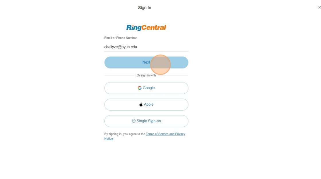 1. Sign Into RingCentral (If already signed in skip to step 4)