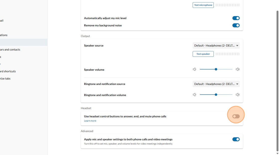 6. On the right side, under the microphone icon, select the microphone you want to set as default so the correct mic is used during calls.